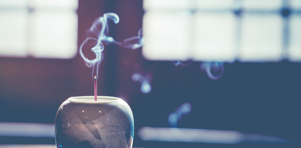 仏壇の前に座り、お線香を一本手に取って火を灯します。お線香の煙には、心を落ち着かせる香りとともに、想いを天へ届ける役割があるといわれています。
